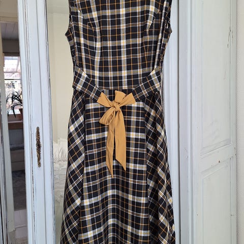 Fiftarimekko.kellohelma.koko m.hyvässä kunnossa.Kirkkokankaalla.käteisellä