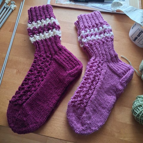 7-veljestä langasta neulottuja villasukkia