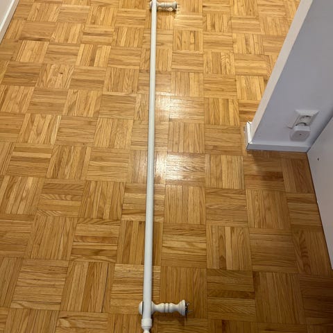 Kuvan mukainen takorautainen amppelin kannake on mustaksi maalattua metallia.