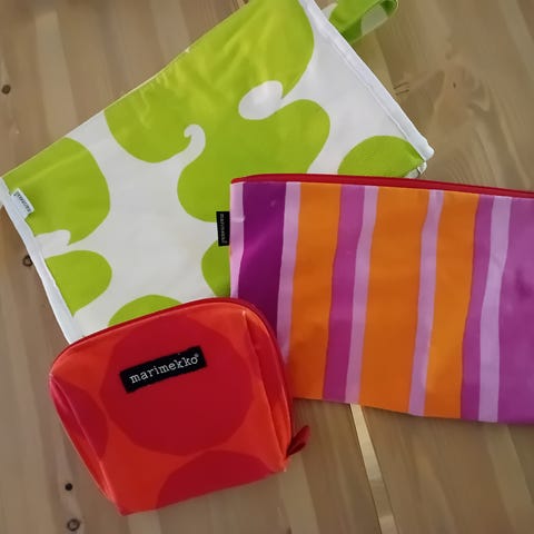 Myydään Marimekon Keijutar Pienet Kivet kosmetiikkapussi.
