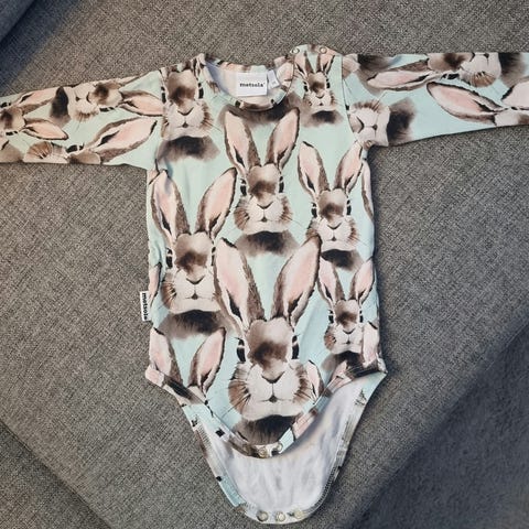 Peuhun Nalle body on ollut kerran käytössä ja pesty sen jälkeen hajusteettomilla Erisan tuotteilla pesuohjelman mukaisesti.