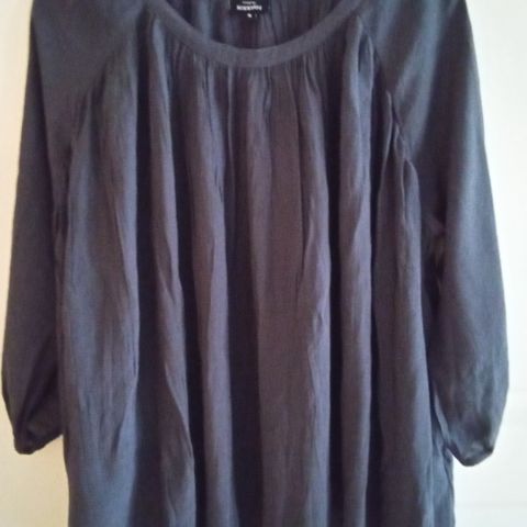 Myydään naisten harmaa pohjainen tunika, jossa liiloja kukkia. Alareunassa pitsiäKoko L 44/46.