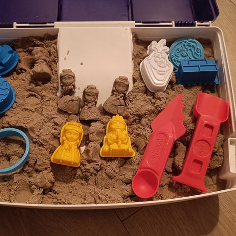 Siisti paketti taikahiekkaa, muotteja ja alusta