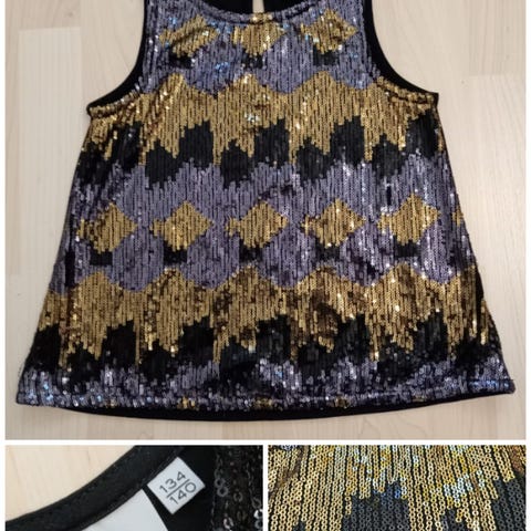 Kaksi t-paitaa, joissa paljetein kirjailtu sydän. Koko 134/140