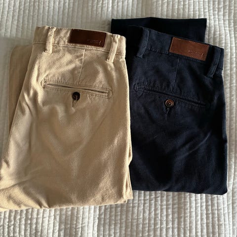 Hyväkuntoiset, hieman pesunukkaa. Pienen nirhauman löysin toisen takataskun vierestä.