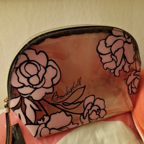 Victorias Secretin kaunis musta kiiltonahkainen meikkilaukku. Ihanan siro, mahtuu kaikki tarvittava. Vetoketju kiinnitys.