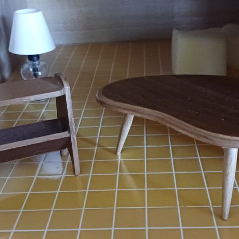 Hakusanat: nukkekoti, nukkis, nukkekodin kalusteet, sohva, nojatuoli, pöytä, valaisin, mittakaava 1:16, 1:18, mini, kuin lego, palikka, palikat, construction.