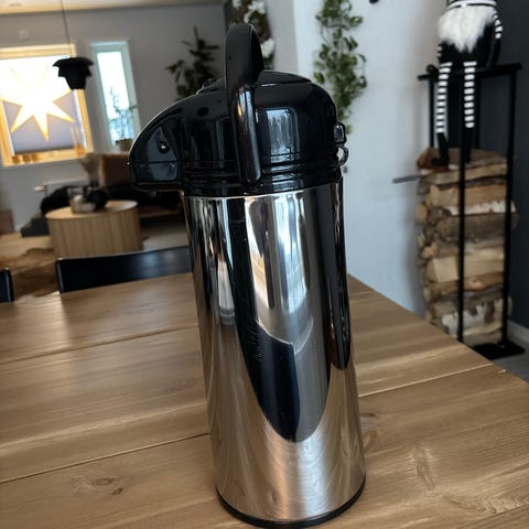 Retro vintage tyylinen termospullo. Vetoisuus on n 1,2 litraa. Ei ole käytetty koskaan. Kiva lahjaidea.Korkeus n 30 cm. En postita. Maksu käteisellä noudettaessa, ota mukaasi tasaraha. Ei varauksia.