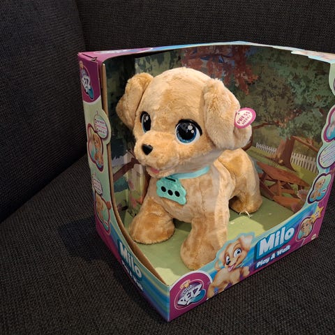 Leikkisä pikkukoira Milo tekee temppuja, kun heilautat kättäsi. Milo pyörähtää ympäri ja liikkuu eteen- ja taaksepäin. Kiinnitä talutushihna kaulapantaan ja lähtekää yhdessä kävelylle. Yli 15 äänitoimintoa. Sis. paristot 4 x AA. 18 kk+