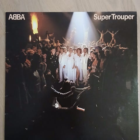 ABBA - Super Trouper vinyylilevy. Käytönjälkiä sekä pieniä naarmuja löytyy.