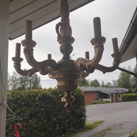 Kaunis posliinirunkoinen kattokruunu. Korkeus 85cm, leveys 85cm. Täysin toimiva. Vain nouto Mouhijärveltä tai toimitus tavarataxilla.