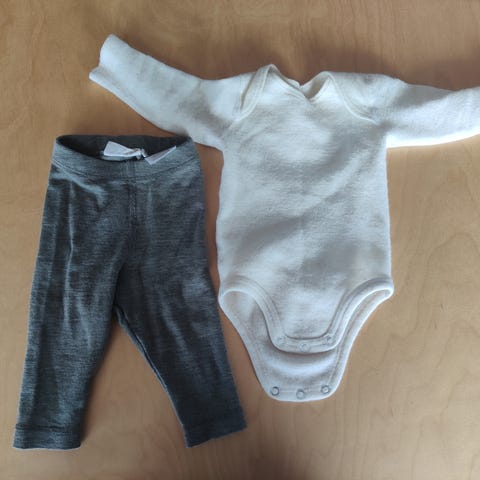 Lapsen kudottu ulkoilupuku,housut ja lakki