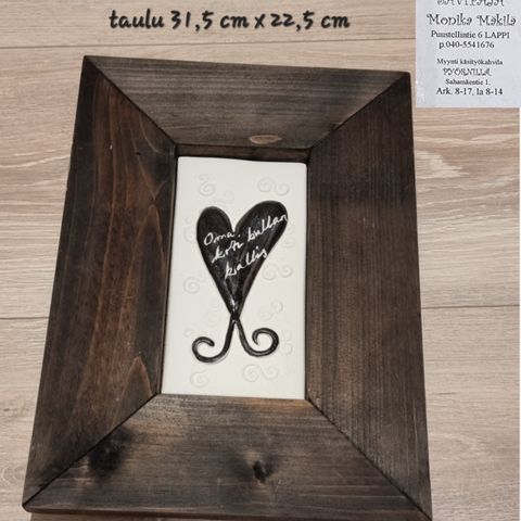 -kehykset puuta ja sydämet savesta tehty