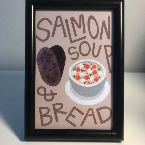 Offered for sale here is a Finnish Makkara Print print in a simple black frame.