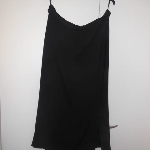 Puolihame musta vuorella, pituus n.52cm, vyötärö n.73cm. Vyötäröllä kuminauha. Kapea malli. Pari kertaa juhlissa käytetty.