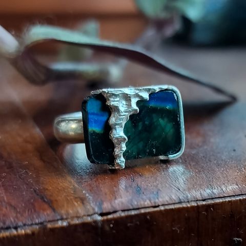 Hieno, uniikki sormus. Käsintehty. Käytetty, joten joitakin naarmuja löytyy. Ovh. 300€.