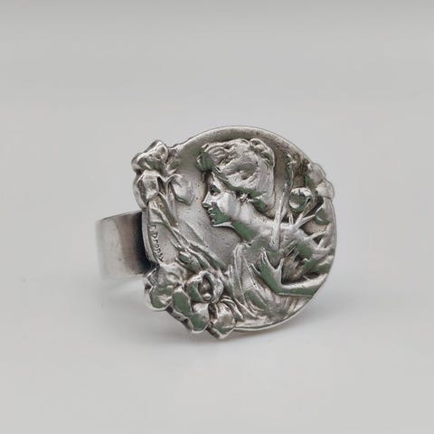 Tekijän oma leima sormuksessa (hämähäkki). Linkistä lisää tietoa.