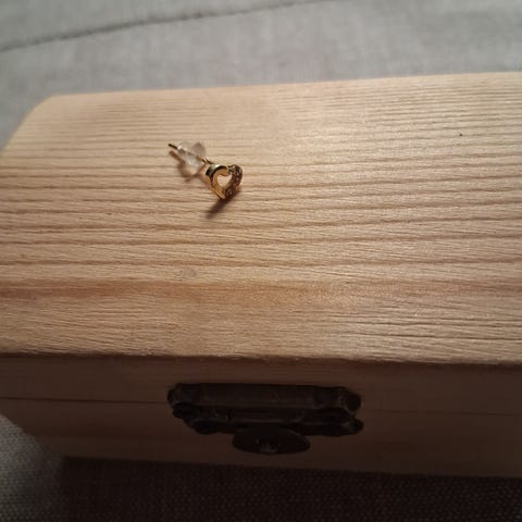 Kullatut korvakorut .yksi korvakorun kiinnikkeistä, ei ole alkuperäinen