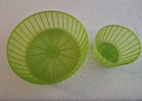 Pienemmän korkeus on 8 cm. ja tilavuus 5 litraa.