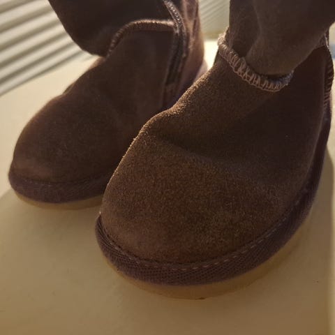 Myydään Melania-merkkiset mokkanahkaiset kävelykengöt joissa kultaiset koristeet.