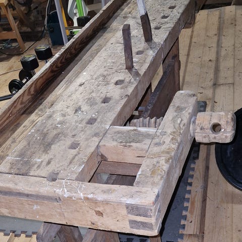Nyt uuteen kotiin vanha, tukeva ja jämerä höyläpenkki.