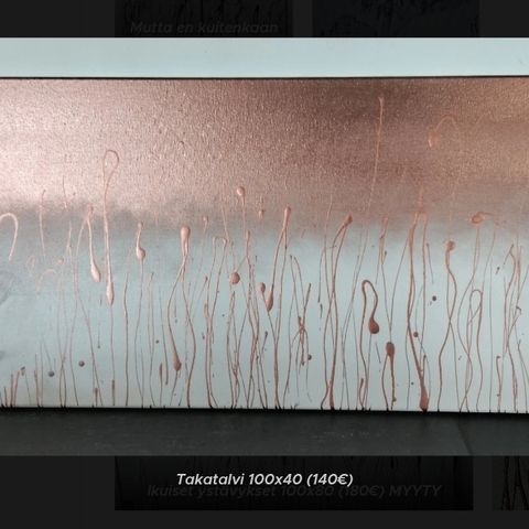 Elämän hohto -kokoelman taulut ovat suurikokoisia abstrakteja sisustustauluja. Ne ovat saaneet aiheensa kirjoittamistani runoista, joista olen piirustuksen muodossa ottanut tauluun pienen yksityiskohdan. Töissäni olen käyttänyt akryyli- ja sisustusmaaleja sekä lyijy- ja hiilikyniä.