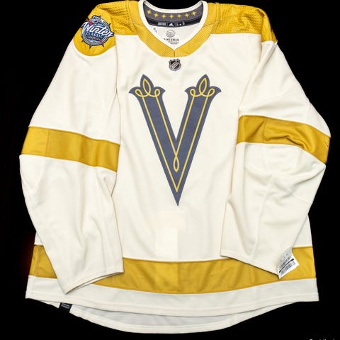 Myynnissä on uuden veroinen Vegas Golden Knights pelipaita Erik Haulan nimellä ja numerolla. Paita on Vegaksen ensimmäiseltä kaudelta 2017-2018 ja sen mukainen kangasmerkki on paidan rinnassa ”Inaugural Season”