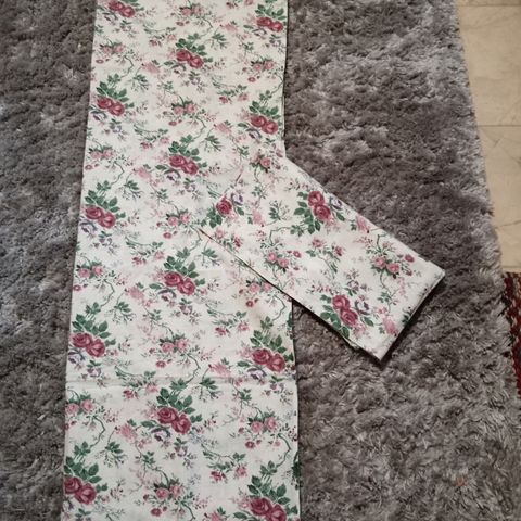 Punaiset, kukalliset Sivu Verhot, mutta käy myös Kappoina, leveys 76cm, pituus 170cm, yläreunassa nauha kuja n.3cm, ehjät.