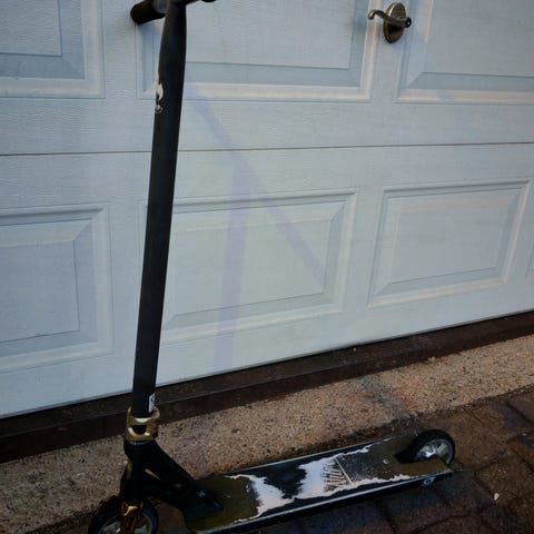 Scootti johon hitsasin ohjausputken ja tangon. Vanha oli hävinnyt. Sekä maalasin mustalla. Ihan näppärä liikkumiseen kaupungilla. Vain haku.