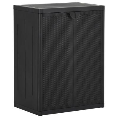 Kestävä materiaali: Kaappi on valmistettu polypropeenista (PP). Polypropeeni on suosittu muovi, joka on myös yksi ulkokalusteiden käytetyimmistä materiaaleista. Se on kevyt, kestävä ja iskunkestävä.