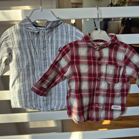 Kaksi koon 62 siistiä kauluspaitaa vauvalle.