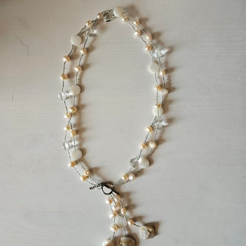 House of Elliotin kaunis, aidoista helmistä koottu kaulakoru. Pituus 45cm.