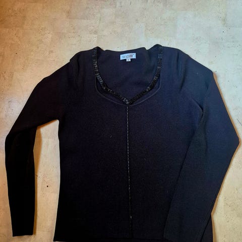 Me &i musta, pitkä pusero,hihat 3/4, halkio kaulalla.