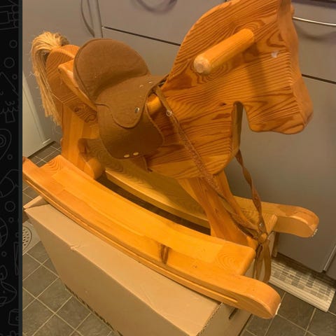Myydään heppakeinu seuraavalle pikku keinujalle.