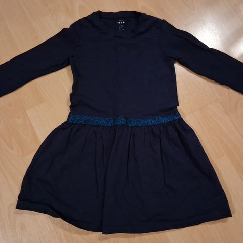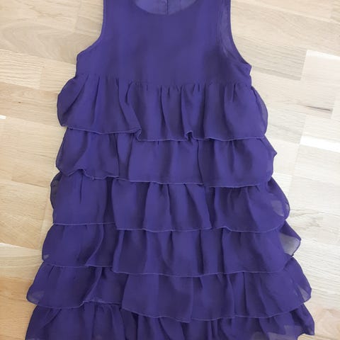 Tyttöjen valkoinen juhlamekko, k.128. Mekon helma on joustava. Pituus 74cm