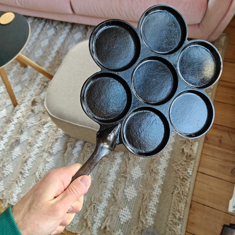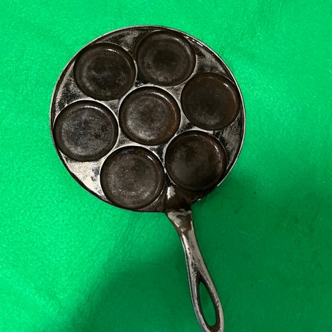 Valurauta lettupannu, seitsemän reikäinen. 20€ kpl molemmat 30€. Nouto Hakaniemestä. Maksu käteinen tai MobilePay