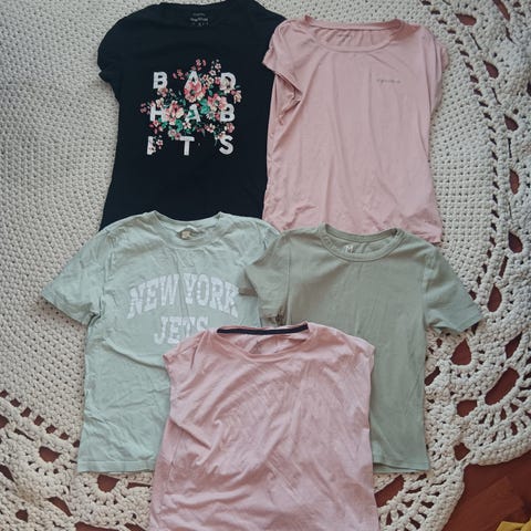 Kolme käyttämätöntä paitaa: raidallinen t-paita H&M, tummansin. v-aukkoinen t-paita KappAhl ja v.sin. 3/4 hihainen KappAhl. Kaikki kokoa XS.