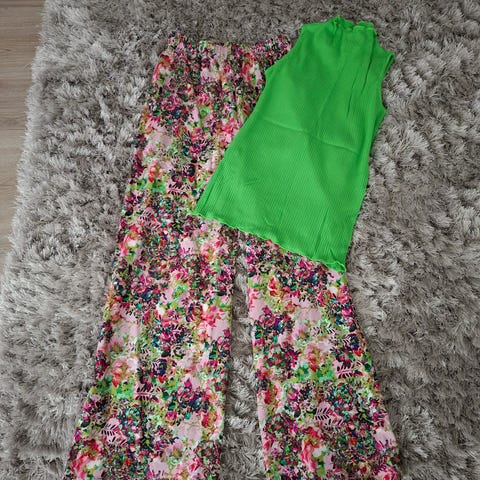 Kaikon ihanan väriset kesähousut 🩷🧡Edessä vetoketju- ja nappikiinnitys, taskut. Täysipitkät leveät lahkeet. Materiaali 100% viskoosia. Tosi mukavat päällä ja viskoosi ihanan vilpoisa materiaali kesällä. Käyttämättömät, hintalappu edelleen kiinni.