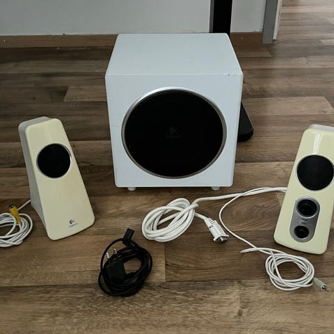 Toimivat ja siistit Logitech-kaiutinsetin pääkaiuttimet, joissa RCA-liitäntä.