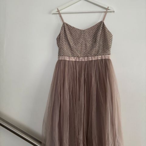 Mekko on midi pituudeltaan. On kokoa S suurinpiirtein, mutta rintojen kohdalta (toisessa koossa oma kokemus) nafti jos isompi rintainen. Uskoisin että istuu parhaiten XS kokoiselle.