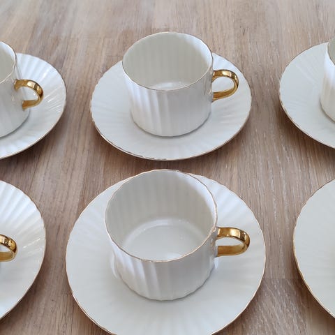 Arabia Kultakorva kahvikuppi,tassi ja kakkulautanen 14kpl