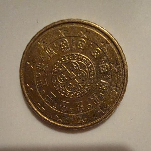Portugalin 5 escudon kolikko. V. 1987.
