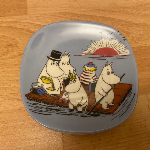 Virheetön ja ehjä Arabia muumilautanen "Muumiperhe lautalla".