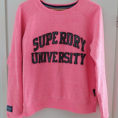 Superdry ihana pidemmän mallinen pehmeä college, väri hennon vaalean persikan väri. Vaikea hahmottaa oikea väritys, kun näyttää eri valossa erilaiselta.