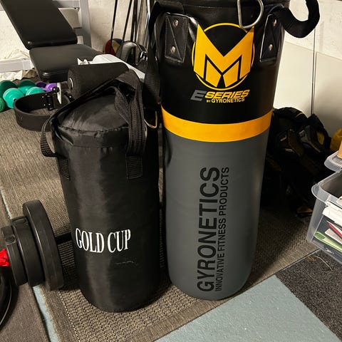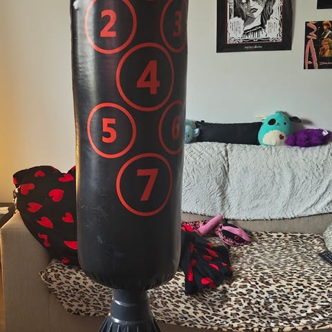 Nyrkkeilysäkin korkeus on n. 90 cm + kiinnitys. Paino 24 kg.