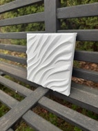 Moderni ja minimalistinen tekstuuritaideteos, joka leikittelee valolla ja varjolla. Kohokuvioidut, virtaviivaiset muodot luovat kolmiulotteisen vaikutelman ja tuovat tilaan rauhallista liikettä ja rytmiä. Taulu sopii erinomaisesti osaksi taulukollaasia tai yksittäiseksi katseenvangitsijaksi pienessä tilassa.