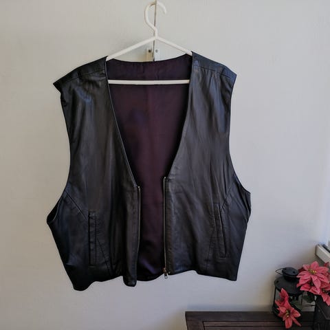 Myydään musta käytetty nahkaliivi. Koko noin L, kunto ok, kuvien mukainen ja tyyli ajaton.