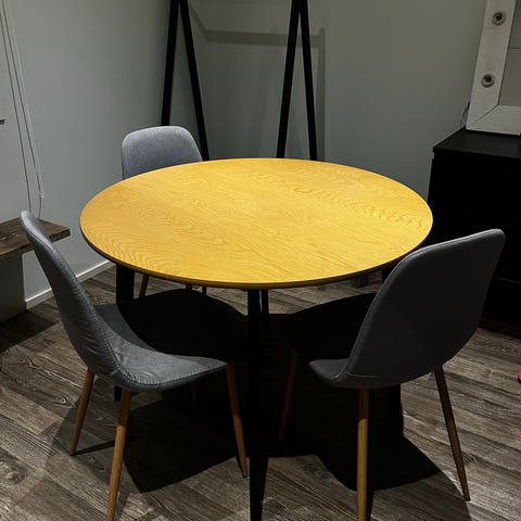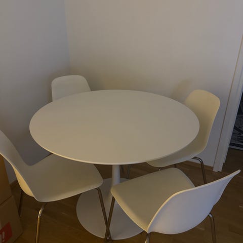 Myydään 4 hengen pyöreä ruokailuryhmä. Joitain pieniä käytön jälkiä voi näkyä.