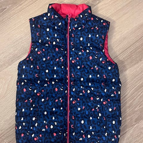 Myydään musta/tummanharmaa liituraitaliivi (pukuliivi) kokoa 130 cm.