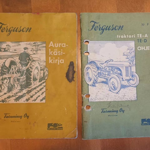Alkuperäinen hyväkuntoinen MF 35 ohjekirja ja saman aikakauden akkuesite.